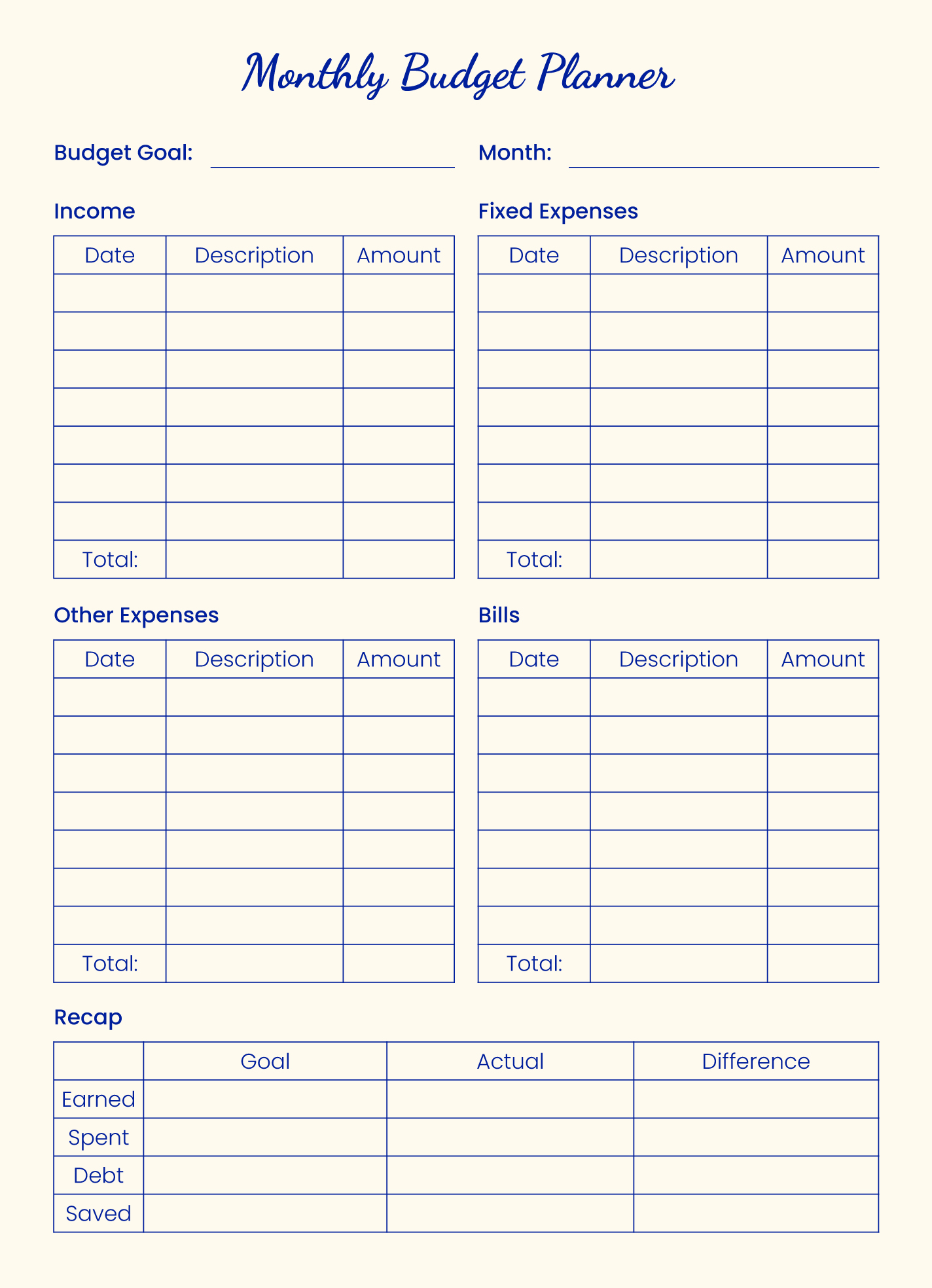 This budget template offers a structured table to help you monitor spending, plan savings, and manage your income effectively every month. Plan your finances like a pro!