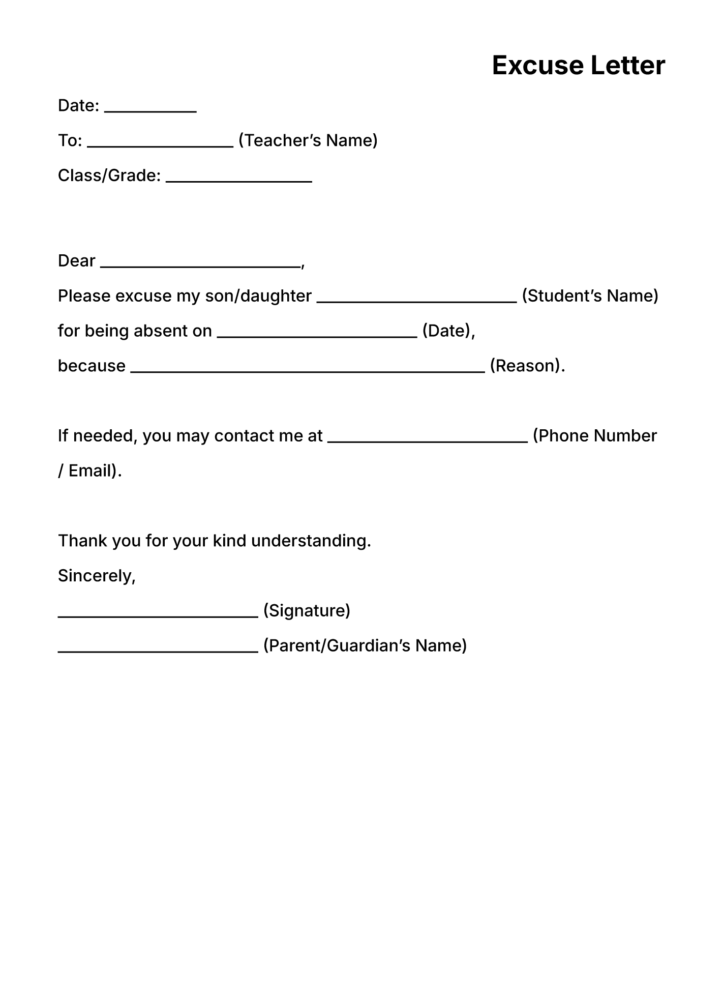 Designed for parents, this template will help you quickly and respectfully explain absences due to illness, family emergencies, or other reasons.