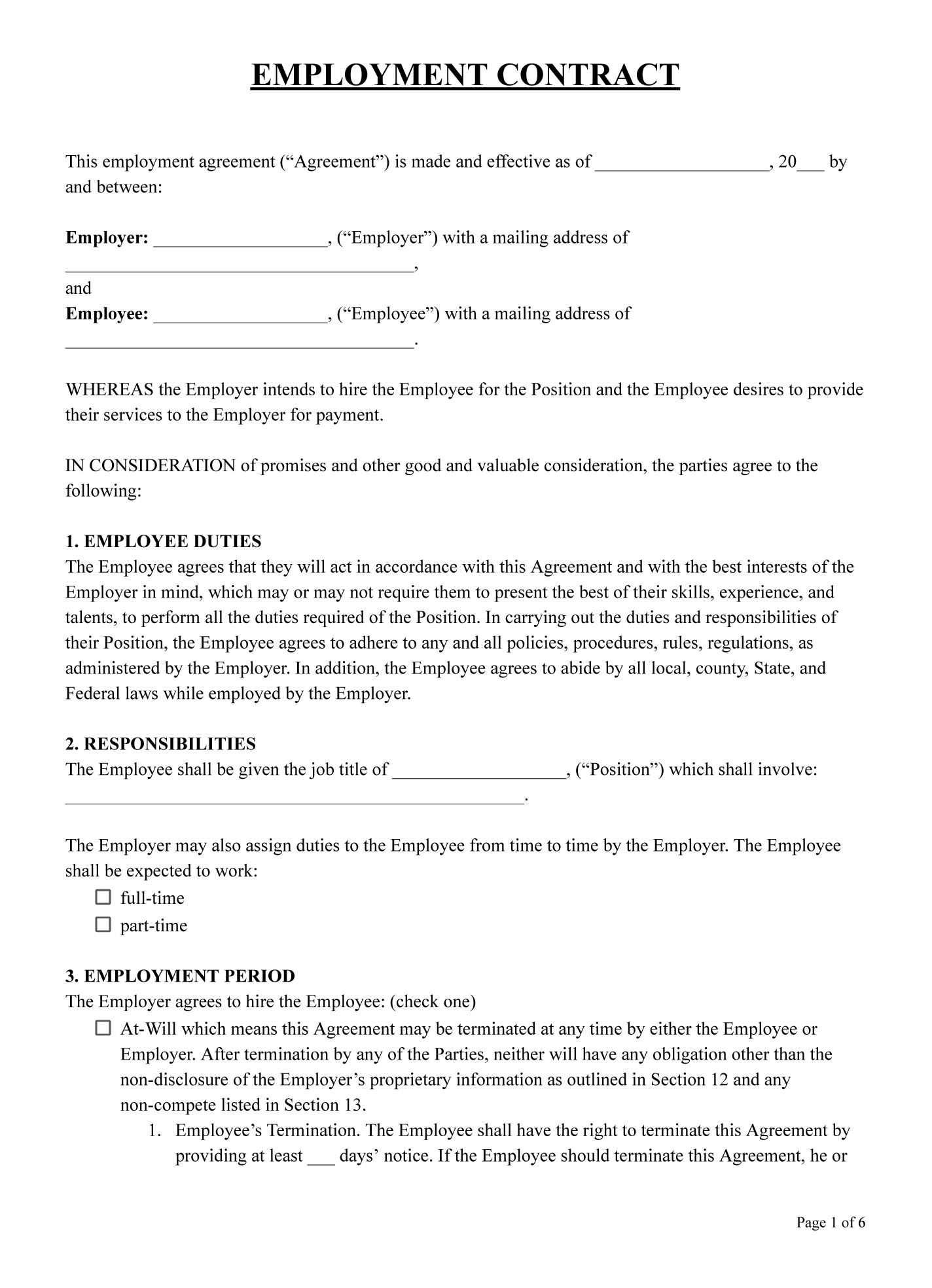 Simplify onboarding with a ready-to-use employment contract designed to cover working hours, compensation, and company policies.