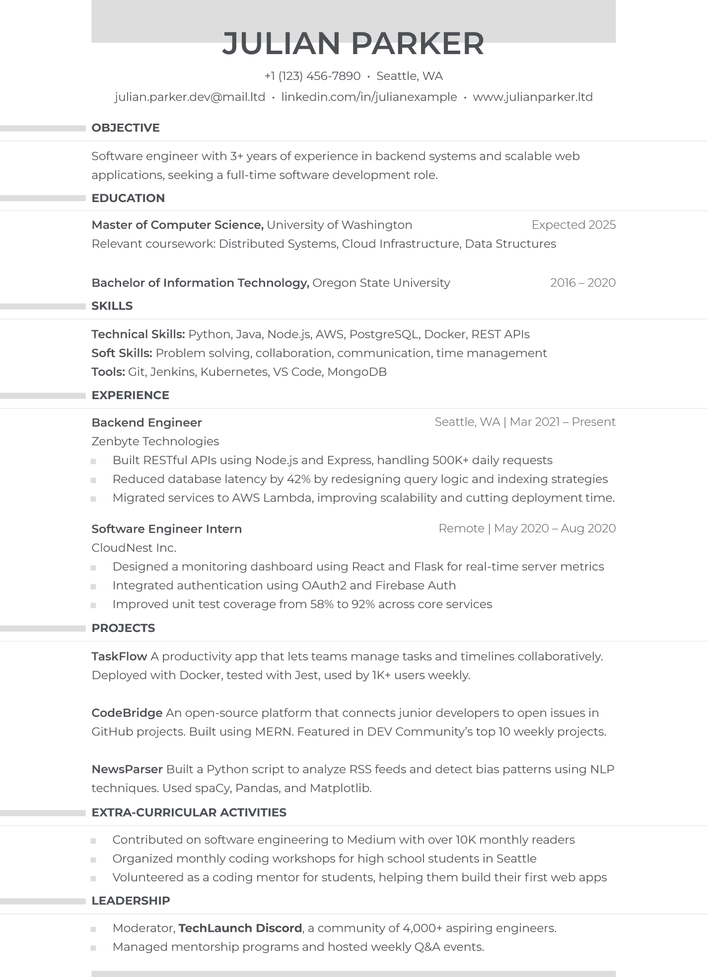 Built for job seekers targeting FAANG, this template blends clean design, organization, and professional appeal recruiters value.