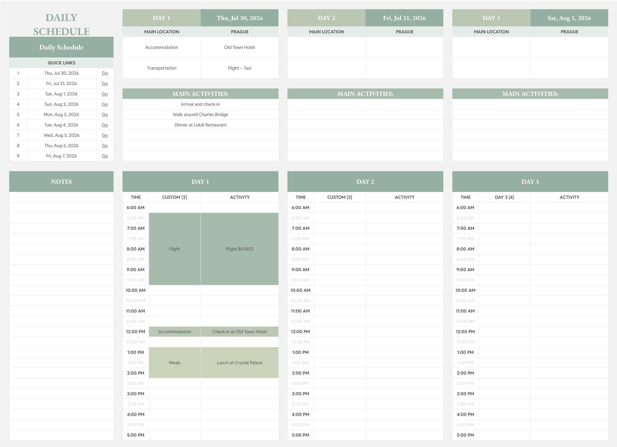 With this daily travel schedule, you can map out activities, stops, and time blocks clearly, making your trip more predictable and easier to manage.